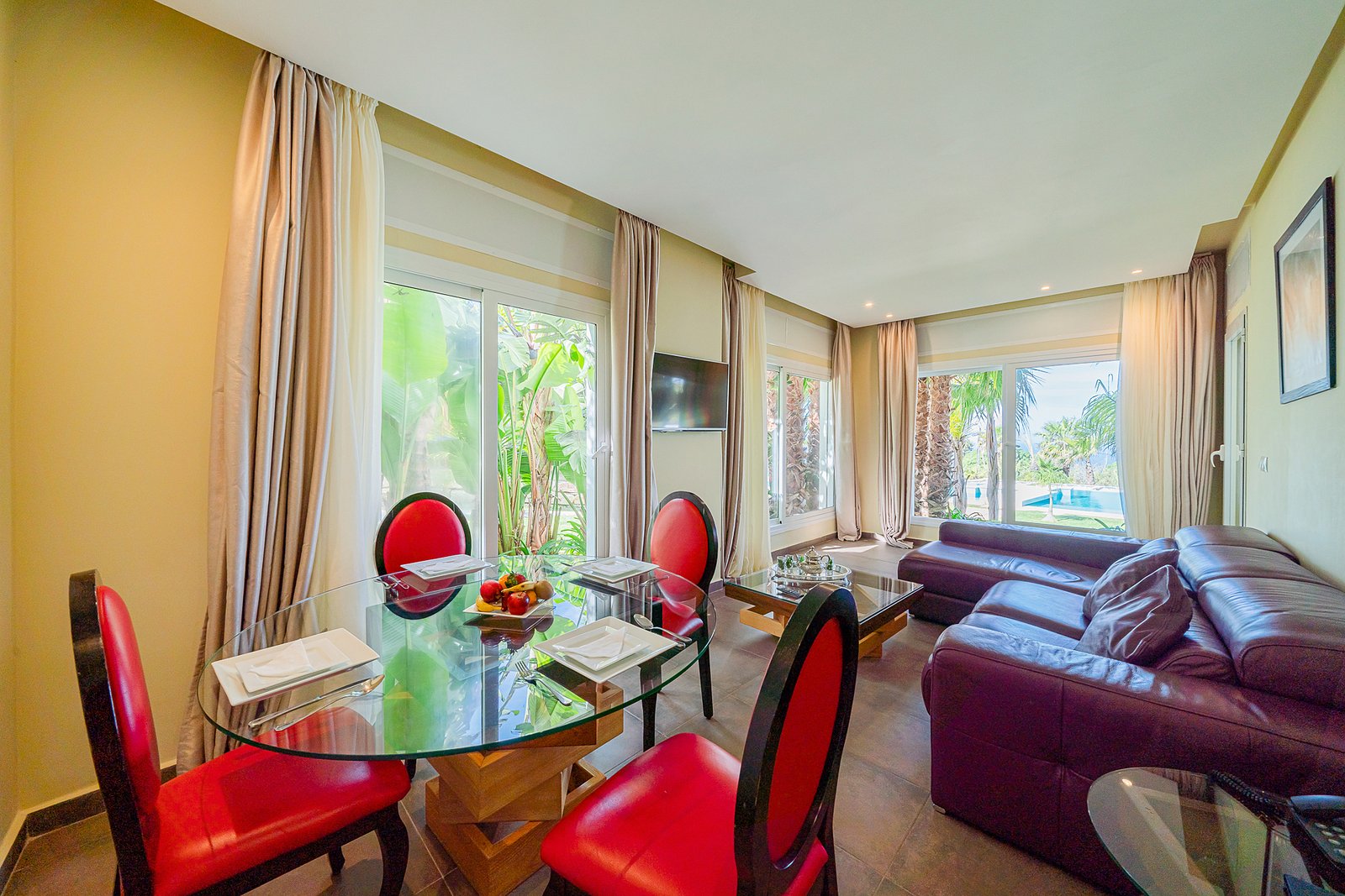 Par ailleurs, la décoration intérieure mélange subtilement design contemporain et touches marocaines. L’ambiance, à la fois chaleureuse et élégante, séduira ceux qui recherchent espace, confort et discrétion.